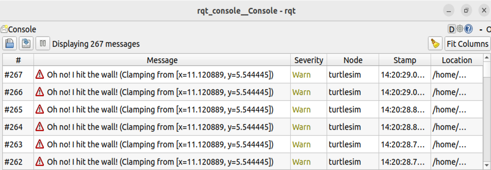 rqt_console can be very helpful if you need to closely examine the log messages from your system. You might want to examine log messages for any number of reasons, usually to find out where something went wrong and the series of events leading up to that.