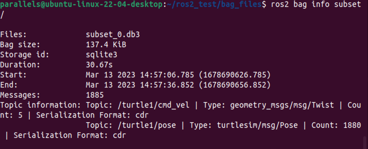 ros2 bag record -o subset /turtle1/cmd_vel /turtle1/pose